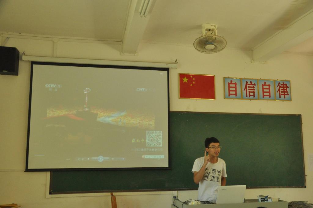 坤湖老师给同学们重点介绍了2015“感动中国”十大人物中的“磨刀老人”吴锦泉和“校长爸爸”莫振高。他们高节卓不群,化作光明烛,用实际行动感动你我,感动中国。观看完视频,不少同学深受感动,眼睛里闪亮着晶莹的泪花。随后,坤湖老师以自己的亲身经历为例子,叮嘱同学们要好好珍惜现在来之不易的生活,学会感恩。