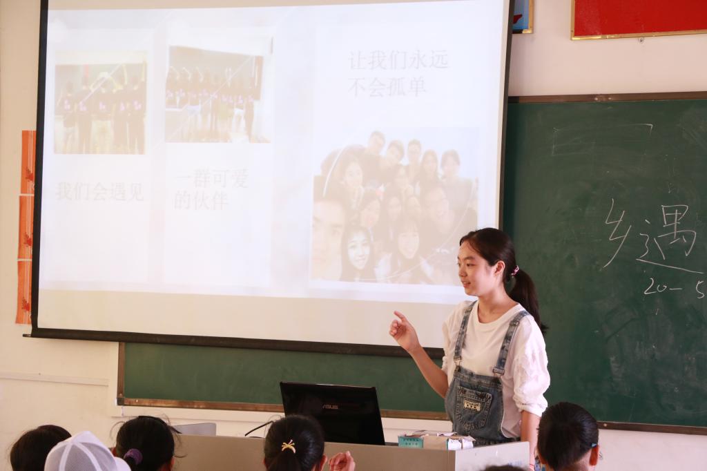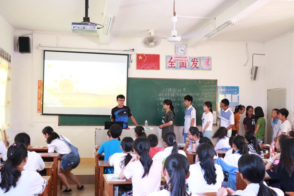 作为一支由志愿者协会组成的三下乡义教队伍,“乡遇”服务队特别开设了一节志愿者介绍与分享课程。课上,老师介绍的“广外西语十二子”的故事,让学生们都沉默了,似乎只有沉默才是对这种感动最真挚的回答。更有学生主动分享自己去参加义演,为贫困大学生筹款的故事,她的故事也令在场所有人掌声攒动。课程的最后,当老师们分享志协的常规活动“欢乐岛”、“康园工疗站”特别是“老人院探访”时,一些学生的眼眶红润了,他们联想到了自己的爷爷奶奶们。我们不常在家人的身边,也往往忽视了对他们的关爱。通过一些志愿者活动并不能关怀到所有人,我们所力所能及的,便是多多关怀身边的人。