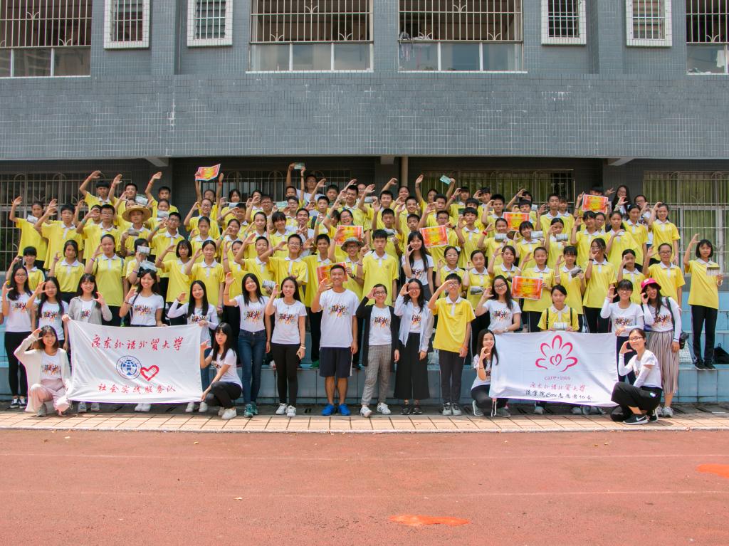 本网讯7月22日早上第一节下课后,广东外语外贸大学法学院Care志愿者协会“凝光”三下乡服务队和英德华粤中英文学校的同学们一起举行了趣味非凡的“全线挑战”。正值农历二十四气节中的大暑,气温早已攀登到“炎”值高峰,可谓是“炎”阵以待。但参加“全线挑战”的同学们和队员们,都已经做好准备,迎接挑战!