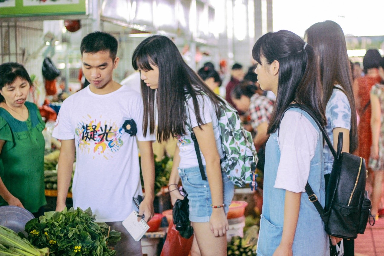 后勤组组员的每一天是充实而又忙碌的。早上五点半鸡鸣声,是后勤组的闹钟,也是他们开始为队员们准备食材的号角。来到菜市场,他们根据前一天讨论好的菜式细心地挑选新鲜的食材,然后匆匆赶回学校为大家准备早餐。