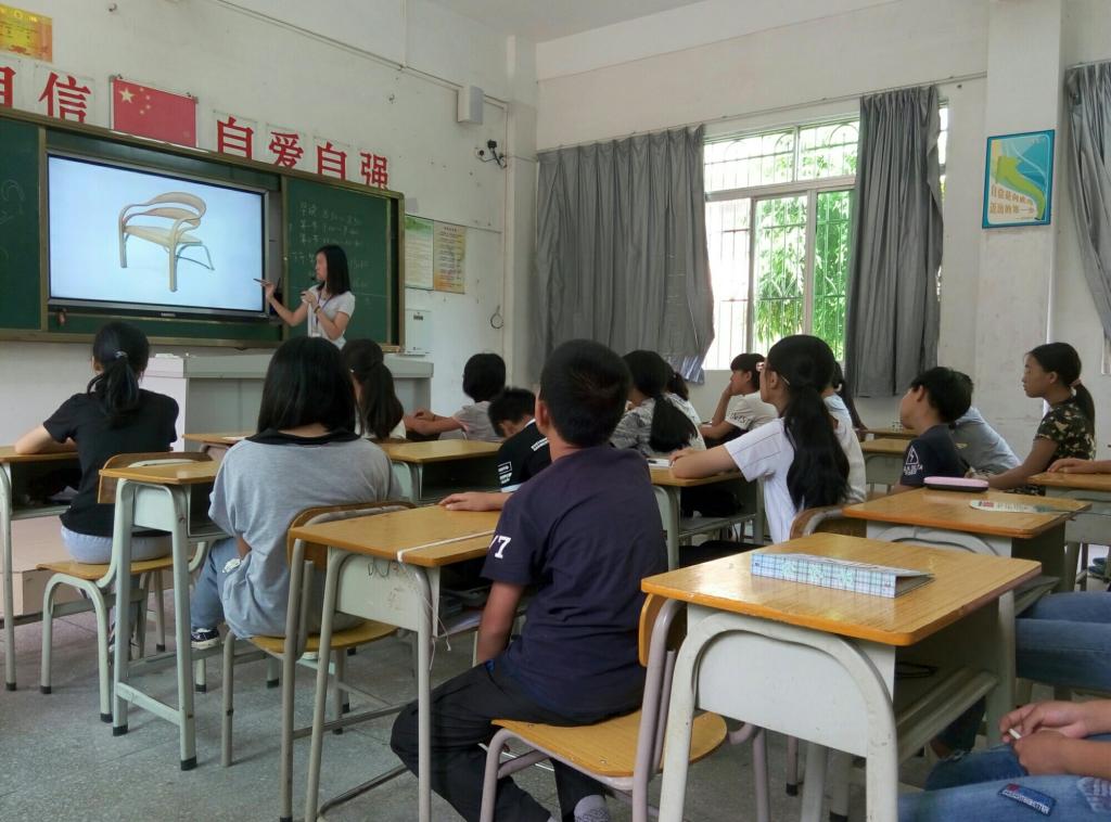 课程开始,老师首先从日常生活出发,让同学们思考家中有什么家具,它们有什么特点,以引起同学们的兴趣。接着是家具的展示环节,老师用PPT的形式给同学们展示了各式各样的家具。古代家具的展示中主要讲述了其用途,并在最后一起总结出了古代家具具有线条美、雕刻细腻入微的特点。现代家具的展示则以三位著名设计师为线,分别展示了他们的代表作品。现代家具以其造型独特、简约抽象的特点吸引了同学们的眼球,引起同学们阵阵惊叹。