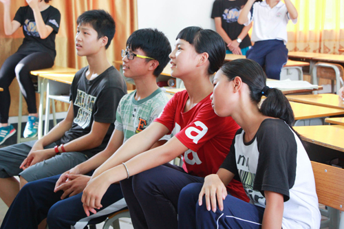 在比赛室隔壁的一个教室,等待比赛的队员显得十分紧张。组长忙着挑选参赛的五个组员,其他组员也七嘴八舌地讨论着比赛技巧,还有组员不停地提出关于比赛的问题。从他们激动的言语和期待的眼神中看得出热情与投入。