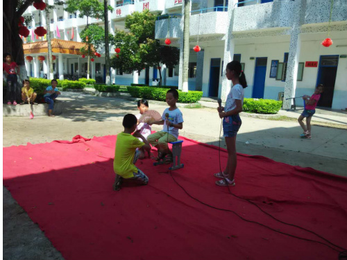 早上8点,绿色行动三下乡服务队以充沛的热情,饱满的精神有条不紊地准备文艺汇演的工作。小朋友们踏着歌声,带着椅子,充满期待地走进了文艺汇演的现场。