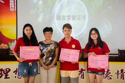 义教组组长郑玉玲在发言中衷心地感谢全体教师学员的坚持和配合,也希望学员们能结合当地的英语教育状况学以致用。广东外语外贸大学研究生支教团的三位支教老师盛雪、胡华导以及杨柔已经在贵州贞丰中学进行了为期一年的实际教学。他们不仅助力当地教育事业的发展,也积极参与当地志愿活动和公益扶贫项目。一年里他们开创和沿用的全英教学方法、英语学习小组模式,“课前五分钟”的课堂引入以及英语角协会等英语社团建设为贞丰中学营造了良好的英语学习氛围。课余时间,他们参与到关心老人、竹林堡徒步大会、走访留守儿童家庭以及乡镇小学等志愿和公益实践中,为当地建设做出贡献。他们希望支教的情怀能够在这里延续,也希望黔西南州的发展越来越好。