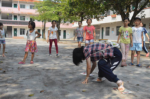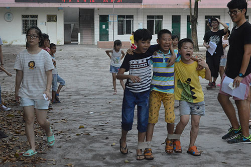 本网讯广东外语外贸大学华笙三下乡暑期社会实践服务队于7月31日下午组织学生进行了一场趣味运动会,在三下乡的过程中,举行一次趣味运动会,不仅锻炼了学生身心,活跃了校园气氛,而且增强了学生的集体观念,培养了学生团结合作的精神,促进了学生终身体育观的形成,更重要的是拉近学生与老师的距离,让他们感觉到老师也有可爱,温暖的一面。此次运动会设有单人赛和团体赛,主要有抢凳子、摸石过河、三人四足、螃蟹背西瓜等趣味项目。