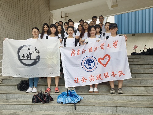 6日早9点,三下乡队伍“乡伴经夏”在队长吴恒的带领下从南校区出发,前往目的地佛山市三水区白坭镇。虽然天气变化莫测,瓢泼大雨的突袭却也无法阻挡我们整装出发。出发之前,队员们在学生活动中心的阶梯处举起校旗和队旗,拍摄了队伍大合照,为期10天的三下乡社会实践活动也由此拉开序幕。