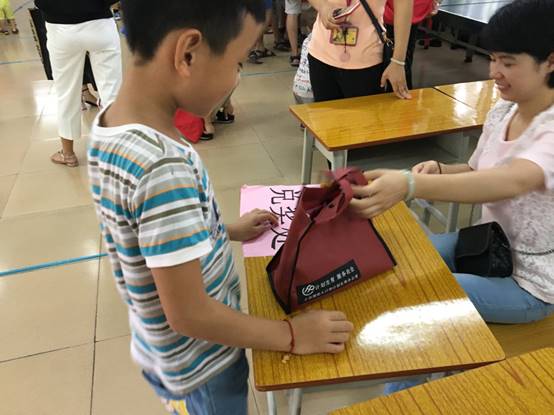 游戏通关的小朋友可以得到相应游戏的印章,集齐五个便可在兑奖处领取神秘大礼包。志愿者们还在兑奖处发放了问卷以了解大家对此次活动的评价。