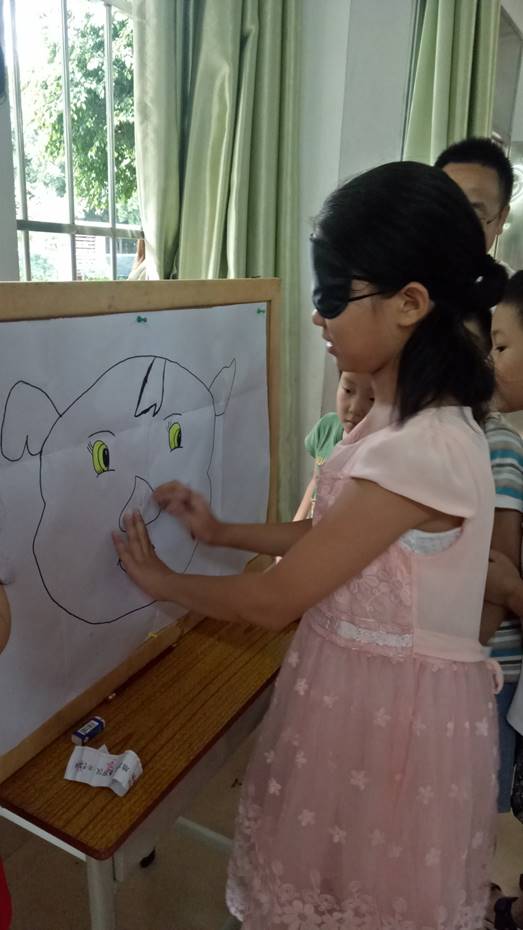 拍完大合照,家长和小朋友们移步活动室参加游园活动。游园活动由贴鼻子、移动的弹珠、你划我来猜、地雷阵、叠罗汉和亲子篮球六个游戏组成。看见这么多有趣的游戏,小朋友们眉飞色舞,兴致高昂,但依然在爱飞翔·方舟起航服务队志愿者们的组织下有秩序地排队进行游戏。