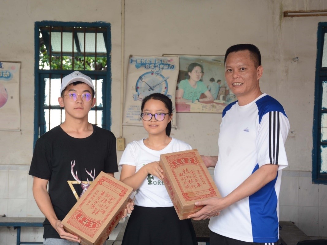 交流结束后,林茂辉及学工队伍前往学校饭堂探望正在准备包饺子的队员们。他们细心询问了队员们是否适应下乡生活,给予了支持和鼓励。慰问队伍送上清凉降火的饮品,并与队员们合影留念。