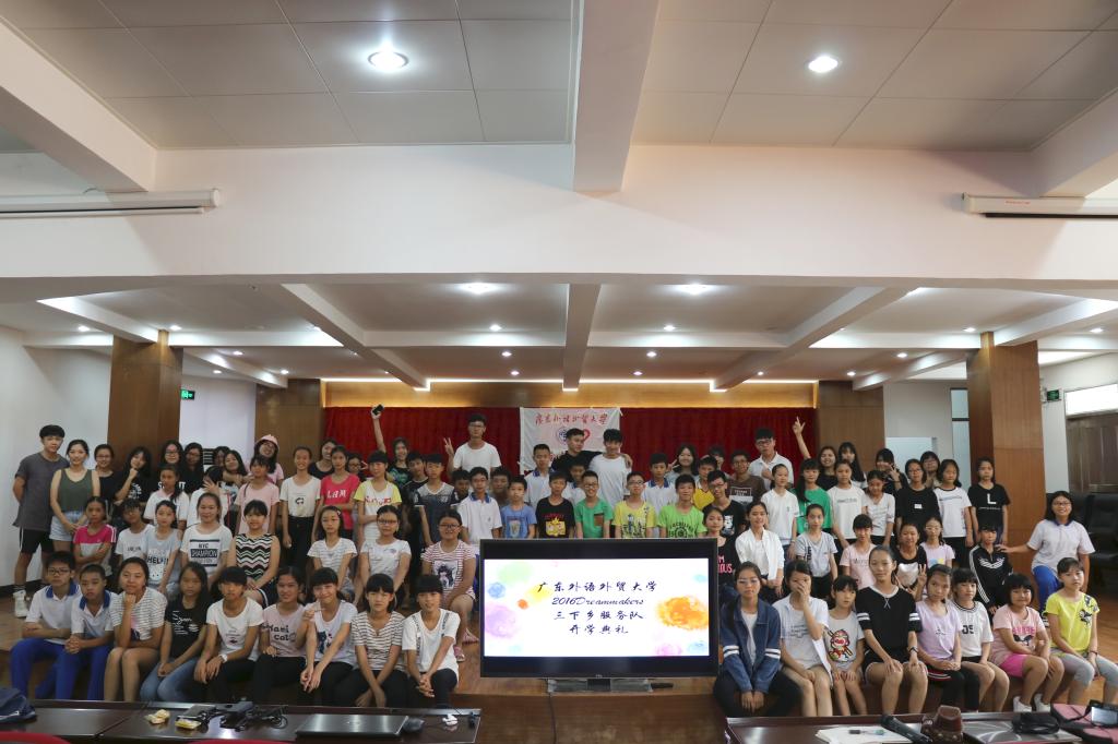 本网讯7月10日早上8点10分,广东外语外贸大学法学院Dreammakers三下乡服务队全员在教室集中,准备迎接参与三下乡活动的学生们的到来。