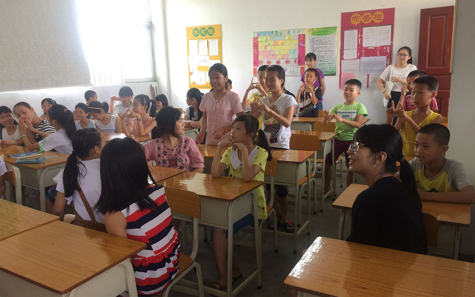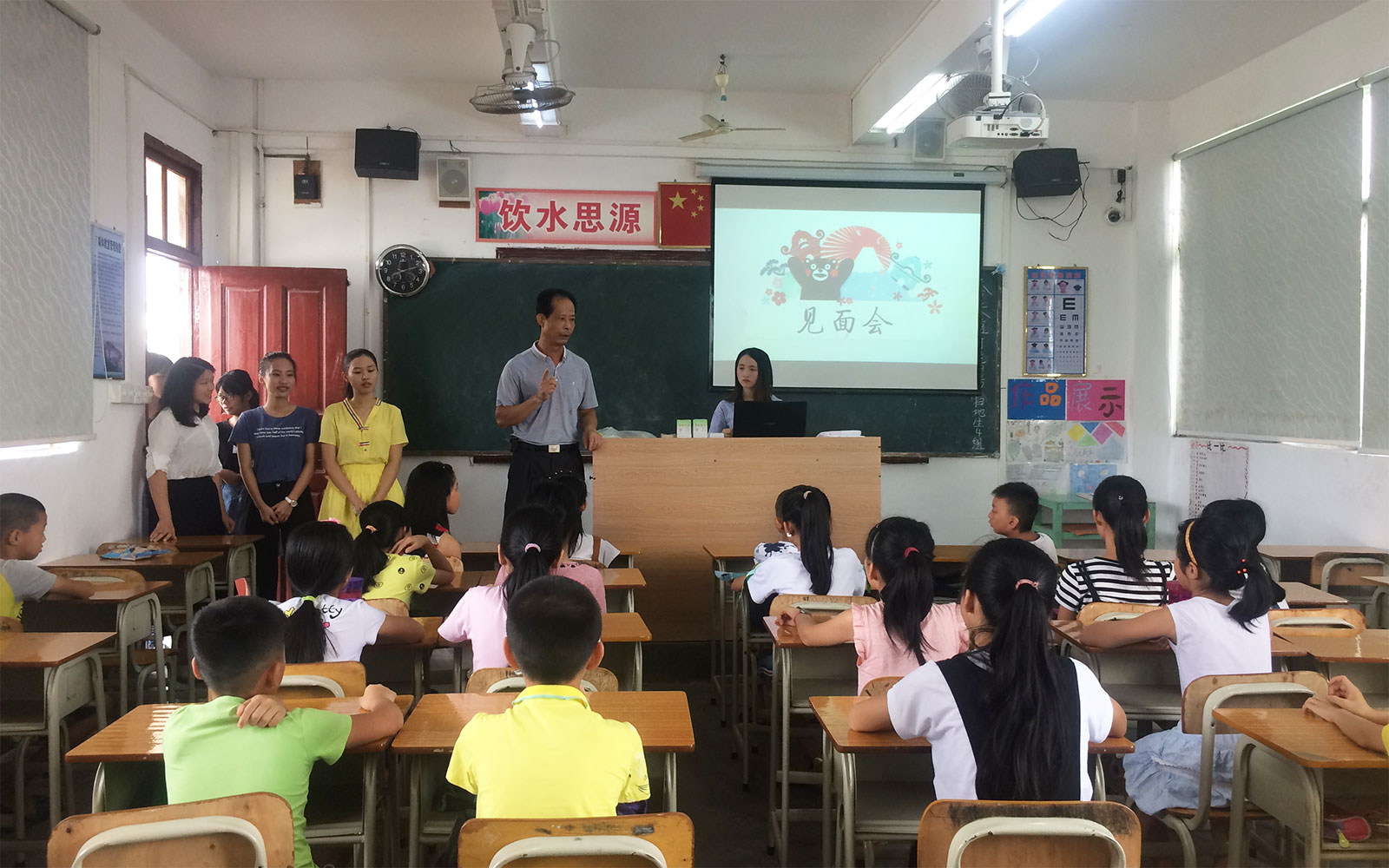 本网讯7月10日下午,已提前一日来到揭东区玉窖镇翔龙中心小学的景行服务队成员早已做好准备工作,迎接孩子们的到来。伴随着艳阳高照,孩子们陆续来到学校,下午14时整,队员和学生的见面会在教学楼201课室正式召开。