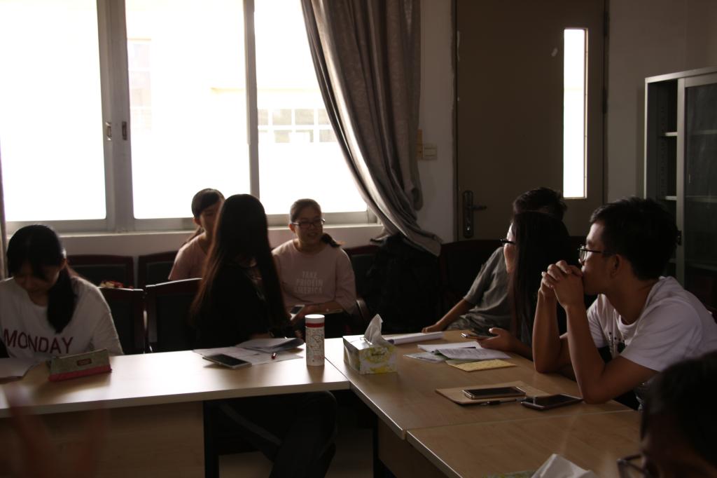 会议结束后,义教组成员们还在热烈讨论着教学安排,为明天正式授课做好充分的准备。
