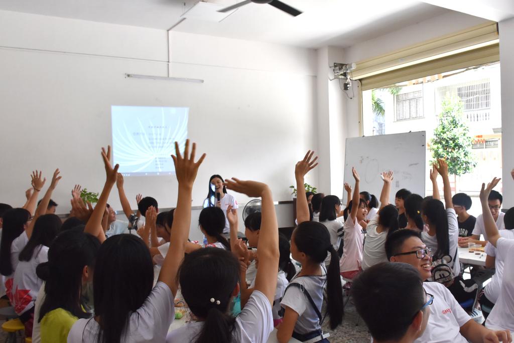 在主持人为小朋友们简单介绍广外风景之后,接着是队长、副队长以及各组长的发言环节。他们讲的话也正是整个筑梦风车服务队所想的,很高兴能来到这里与小朋友们相遇,我们会尽最大努力去聆听和感受,希望能帮助他们解决学习和生活中的疑惑,与此同时收获友谊和快乐。