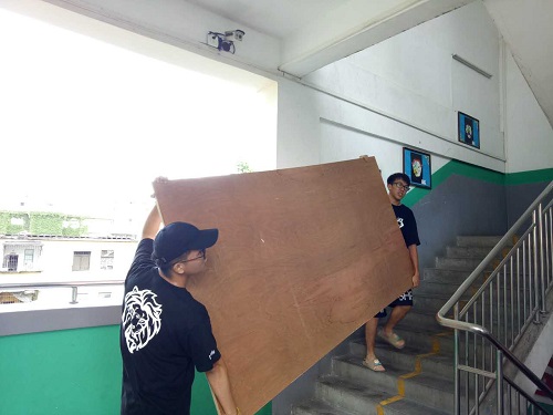 经过两个多小时的车程,Leo三下乡服务队全员安全抵达中山市博爱小学,随后该校领导带领我队成员有条不紊地进行住宿安排,男生负责搬运床板,女生负责打扫作为临时宿舍的教室和擦洗床板。在男女搭配的合理安排下,不到一个小时,入住及整顿工作完成。