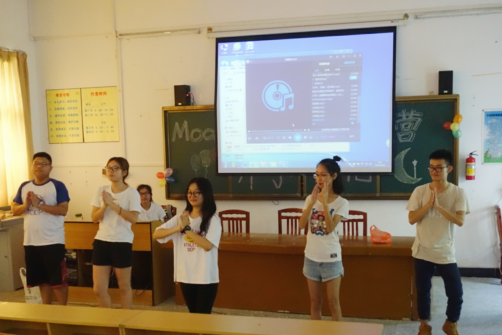 接下来队长团的三位成员分别进行了自我介绍。队长许洁纯对学生们说,“希望每个队员都能像月光一样,照进你们心里,帮你们找寻自己内心的宝藏。”后勤组队员在自我介绍之后,献上了精彩的舞蹈表演,活泼的舞蹈和逗趣的音乐活跃了全场的气氛。雪花般纷落的纸片和最后的撒糖活动更是吸引了全场的目光。义教组的两位组长和副组长为学生们朗诵了一首《再别康桥》,学生们陶醉于优美的诗歌,场内也变得寂静无声。