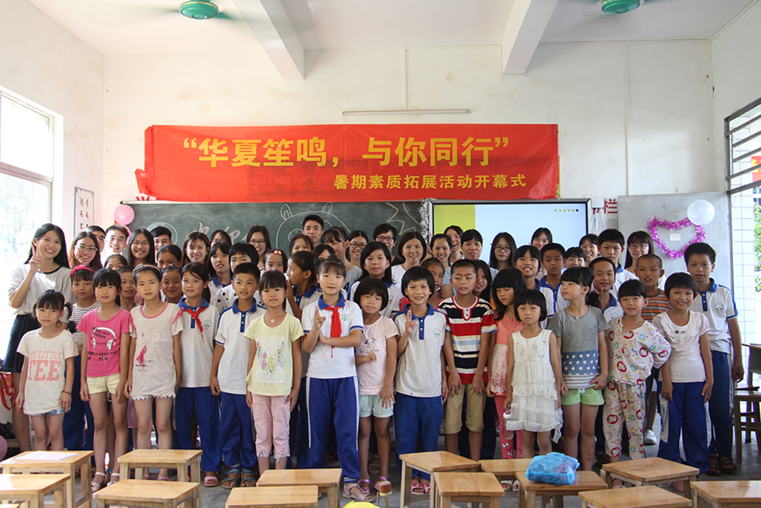 本网讯7月10日,“华夏笙鸣 与你同行”三下乡活动于龙川县老隆镇联亨小学正式拉开帷幕,参与活动的有当地30名小学生及广东外语外贸大学华笙三下乡服务队20名志愿者。会上,联亨小学校长张惠燕、广东外语外贸大学商学院管理系2015级辅导员殷毅山对本次活动作出了重要指示。