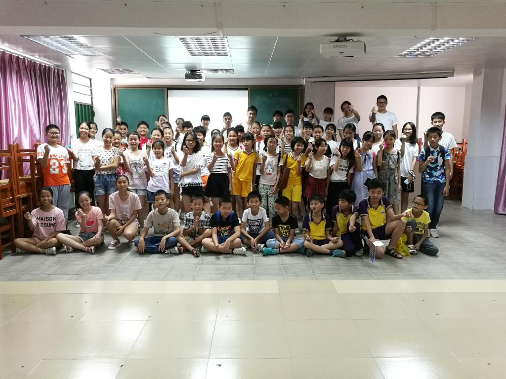 在互动环节,先由夏语予人服务队的陈晓慧队长与谢鸿凯副队长介绍队伍的基本情况并对下乡十天的生活做出美好的展望,之后便到了孩子们最喜欢的游戏环节。看着孩子们热情洋溢的笑脸与在空中拼命挥舞的小手,队员心中对冷场、被排斥的不安最终烟消云散……义教组中的两位班主任也表示:“看到同学们开朗的笑脸,听到同学们开怀的笑声,自己对工作也更有信心,更有激情。”