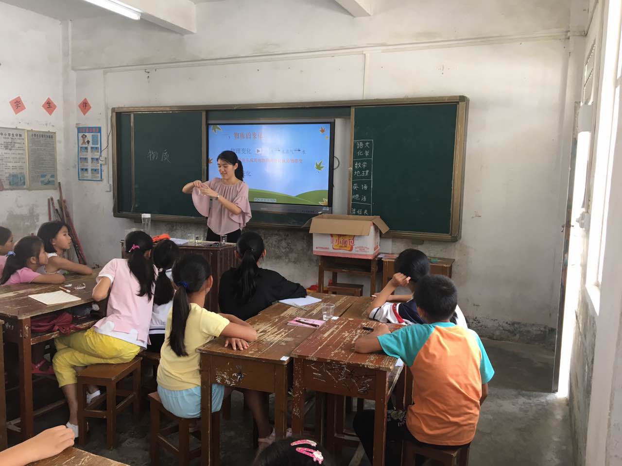 秉承三下乡活动的宗旨,聚焦课堂,开展了丰富多彩的义教课程。结合广外的外语教学特色和服务队成员的专业的背景,设计出具有新意且贴合河源市陂头镇的地方特点的课程。不仅有妙趣横生的“你说我猜”,还有引人入胜的“德语教音标”。创新课堂形式,打破单人学习模式,结合导师制和小组讨论制。让学生与老师之间的互动更频繁,学生与导师之间更紧密。这种新的模式在实施中也取得不错的效果。