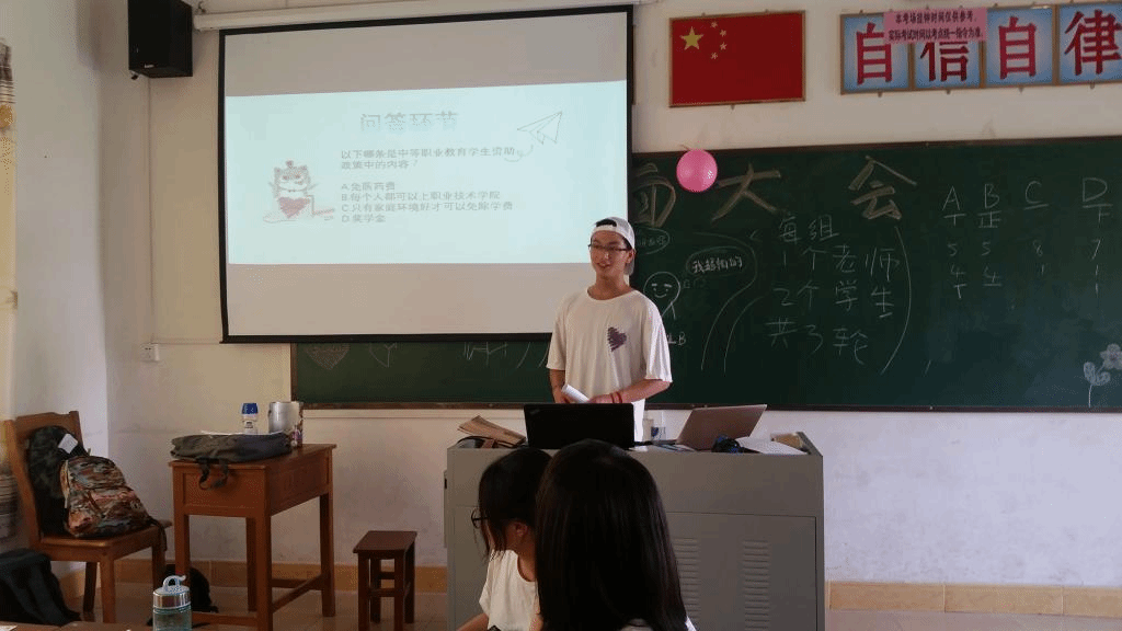 在温馨的师生见面会后,乡遇队员陈海斌为同学们详细介绍了国家助学资金政策。他特意加入的有趣的问答环节强烈吸引了台下同学们的兴趣与积极性,让同学们对国家政策有了更加清晰直观的了解,也对自己有了更高的期待、树立了更坚定的人生目标。