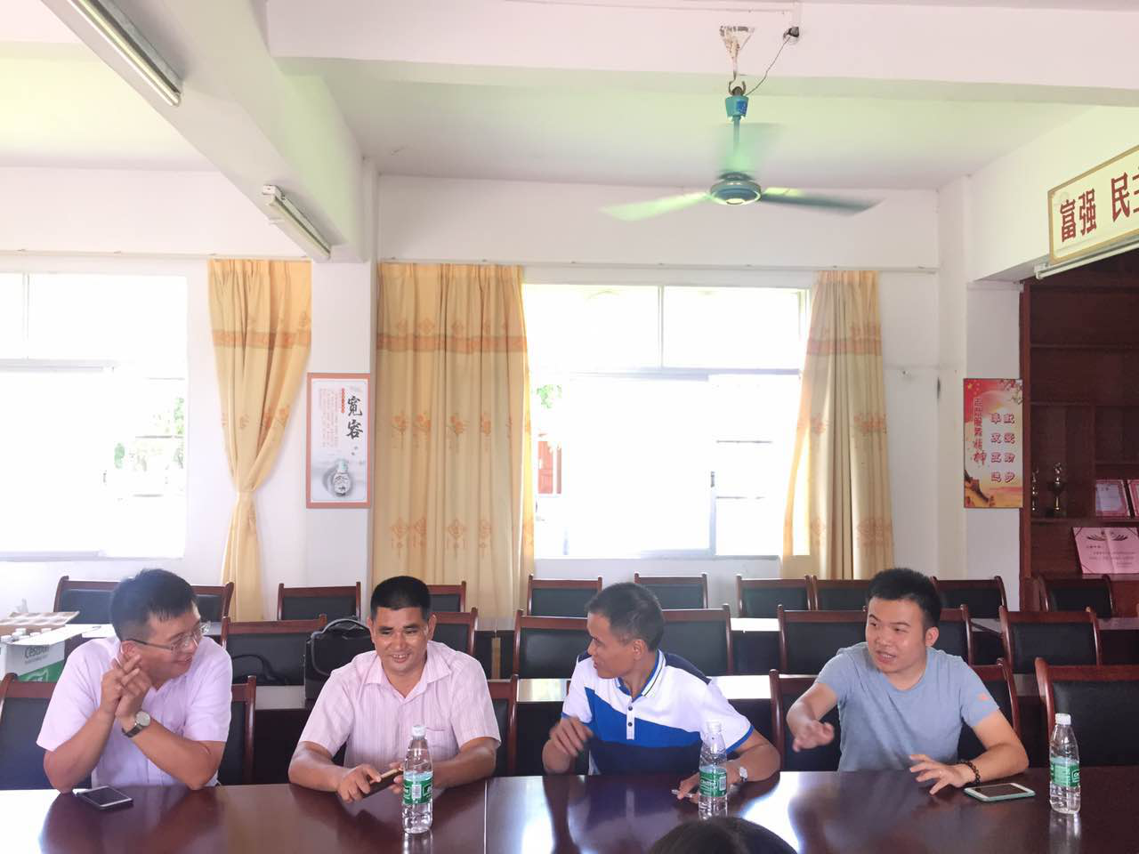 经济贸易学院党委副书记魏传文、辅导员谢铭威、辅导员刘世鹏在大塘中学杨志坚主任的带领下,在会议室与乡遇队员代表进行了亲切友好的交谈。会上,魏传文书记首先强调了下乡过程中的安全问题,提醒队员们注意人身安全、财产安全及食品安全。此外,魏传文书记鼓励队员们在下乡过程中要克服艰苦环境、体察社会民情、进一步了解国家发展状况,在教学过程中要向学生传播正能量,学会灵活处理突发状况。杨志坚主任也对本次下乡行表示大力支持。随后,在杨志坚主任及乡遇队员的陪同下,三位院领导参观了本次三下乡的教学课堂成果,给予我们高度的评价,鼓励我们砥砺前行。
