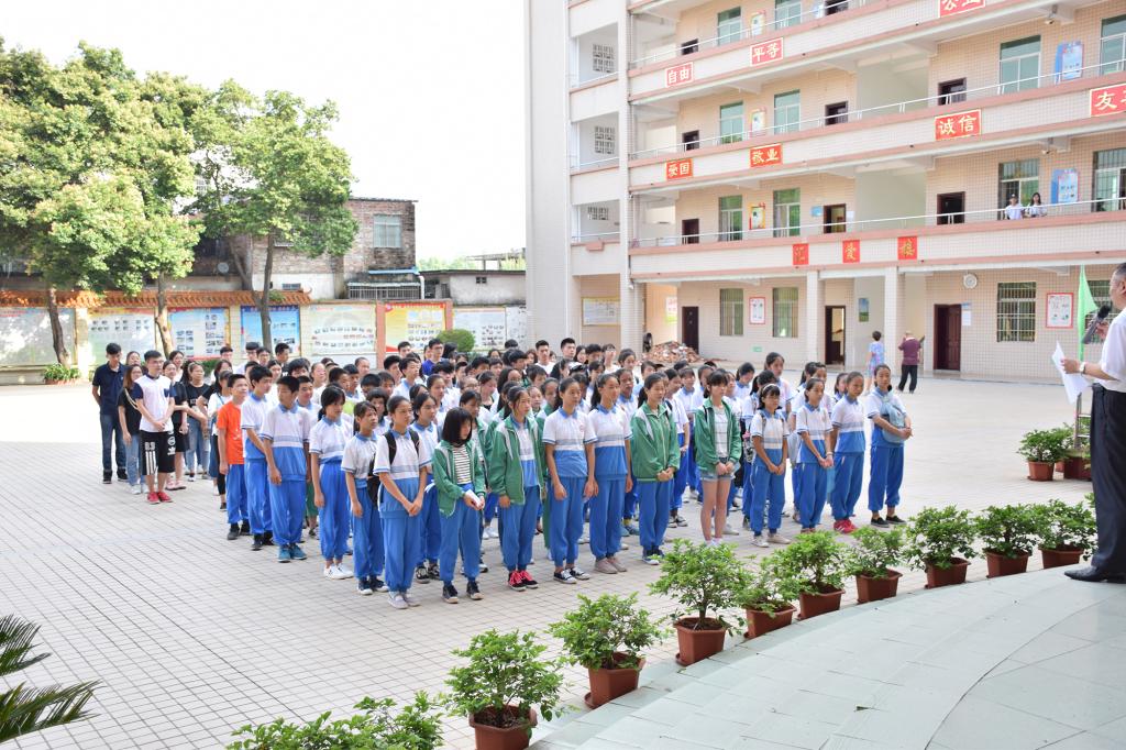 两个班级的同学们整齐有序地排列在厚爱楼前,随风飘扬的五星红旗指引着同学们为“中国梦”的实现而奋发向上。张育明副校长的讲话首先提到了要感谢广东外语外贸大学经济贸易学院的支持,感谢经贸学院同学们的配合,感谢教导主任的辛勤付出,以及感谢学生家长们的支持和信任。接着他提到了学习的内容,张育明副校长先对广外给予了非常高的评价,然后向同学们分析要学习我们的学习素质、知识气质和知识结构;学习我们的实践精神、服务精神和感恩精神;最重要的是学习我们的担当精神,因为这契合了学校坚持着的责任教育和担当教育。校长的讲话主要是教育同学们要懂得感恩,鼓励同学们向我们学习,同时也鞭策着我们把作为广外学子最为优秀的一面展现出来。