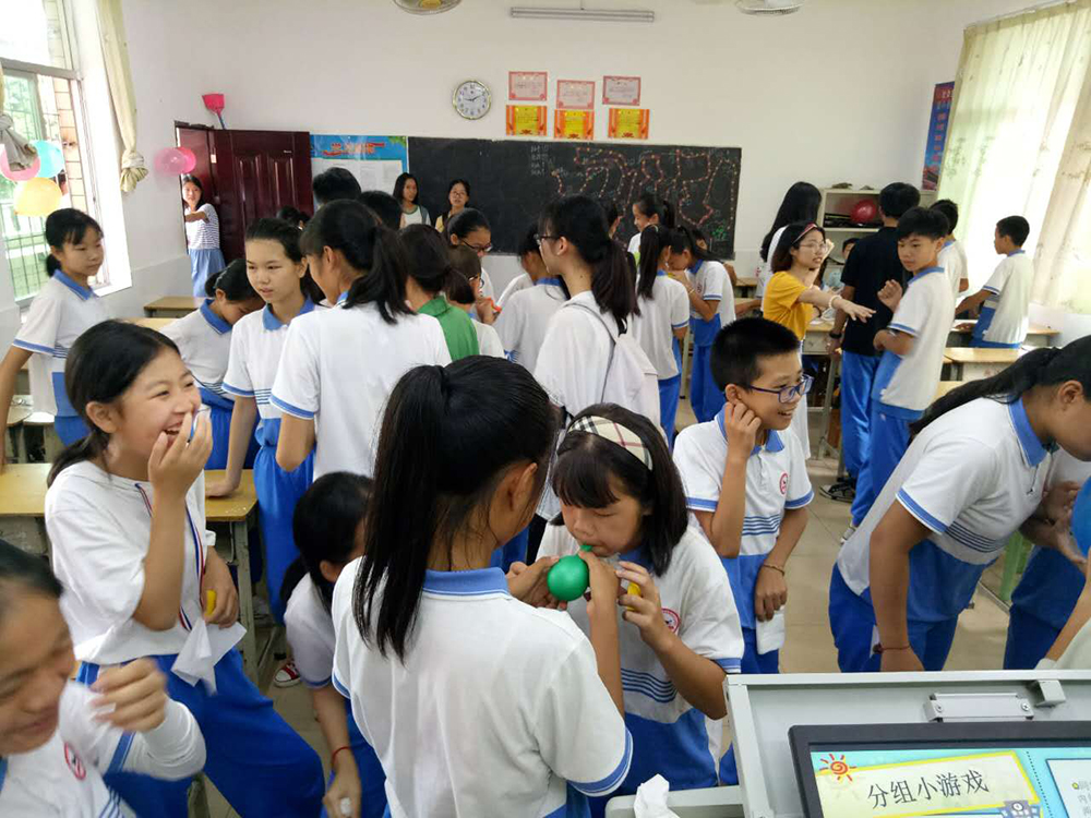 本网讯7月11日上午,Light全英服务队与曲江第二中学的同学们一起参与了见面会。早上七点二十分,就有很多同学来到了教室。八点半,在全英队成员的组织下,同学们站到厚爱楼前,聆听张育明副校长的讲话。张副校长主要强调了两点内容:感谢与学习。九点至十点半,我们进行了见面会的各项活动,包括队长讲话、各组成员自我介绍、分指导老师游戏、猜灯谜游戏、你比我猜游戏以及班会课。下午两点半,义教组的组员们正式开始给同学们上课,从同学们求知若渴的眼睛中可以看出他们对于这些课程都非常的感兴趣。