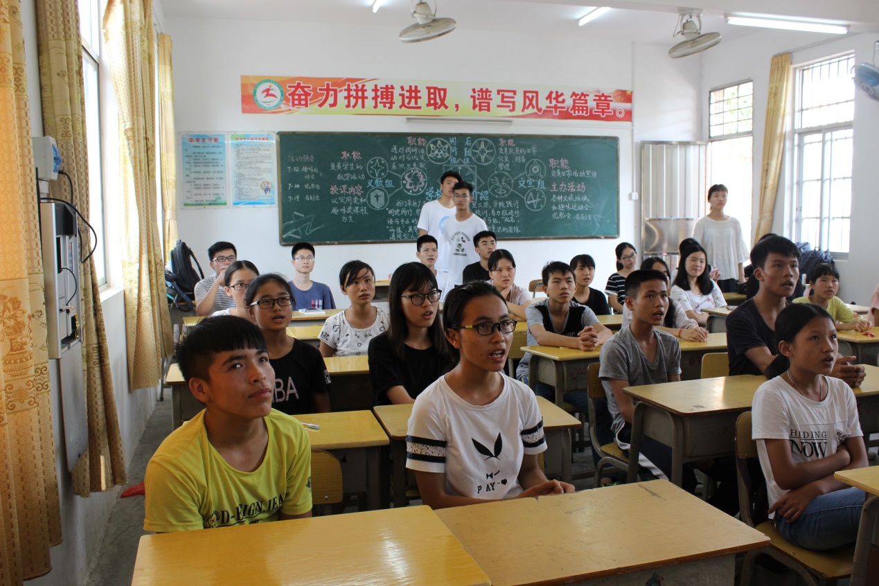 K歌会分为“听歌识曲”和“朗诵识曲”两个部分。听歌会一开始,同学们就十分进入状态,踊跃地举手抢答问题。不仅同学们积极地参与到K歌会,坐在后面的队员们也是非常活跃,当遇到同学们猜不出的歌时,他们就发挥了重要的作用。到了“朗诵识曲”的环节,学生们还一起鼓动义教组的组员们上台朗诵歌词和演唱。