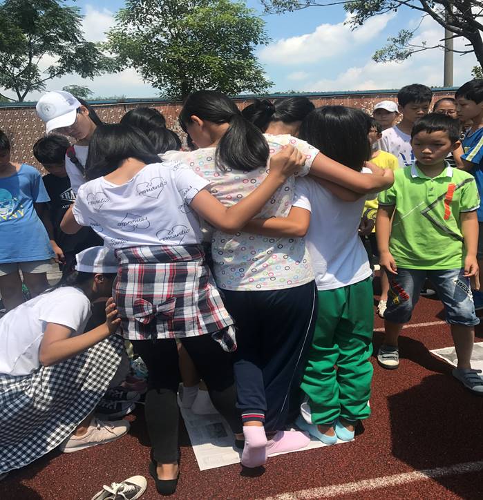 (三)纸上奇兵:每轮2个班,进行石头剪刀布,输的队伍报纸对折,站在报纸上的人数加一,以此类推。猜拳结束后,输的队伍有45秒的时间设想站位方法,超出45秒仍未设计出站位方法的队伍则视为弃权,游戏结束。站在报纸上的成员脚不许踩在报纸以外的地方,站位方法需坚持五秒。报纸内能站人数最多的班级获胜。
