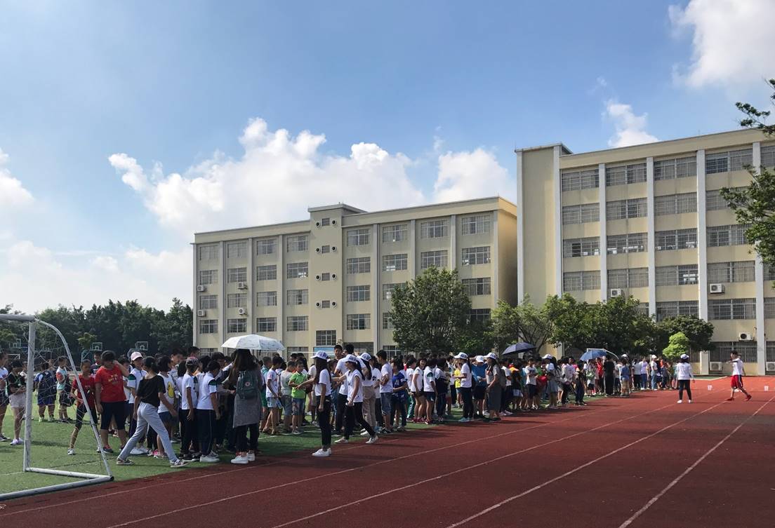 本网讯2017年7月12日早上九点整,广外法学院forever三下乡服务队为大塘中学新生举行的趣味运动会在操场上正式拉开序幕。本次活动共有四个项目,分别是:端球跑、争分夺秒、纸上奇兵和比比谁大力。八个班级的同学们都非常积极地报名参加运动会,班与班之间的竞争非常激烈,同学们都拼尽全力为班级争光,争取好成绩。