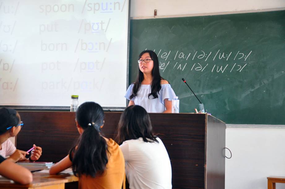 在教学活动上,为了体现广外英语优势,此行义教加入了大量英语课程。音标作为英语发音的一大利器,在英语学习有着广泛的作用,而“自强之心”服务队开设的英语语音语调课程,能对学生的英语口语学习起到很好的推进作用;为了让学生更加大胆说英语,从而开设CECL(交际英语)课程来提高学生口语能力;英语戏剧工作坊课,是以英语教授学生英语戏剧的发展,通过表演的形式,更好地让学生感受戏剧表演的魅力;除此特色课程外,还有日常的英语听力、阅读和写作课。