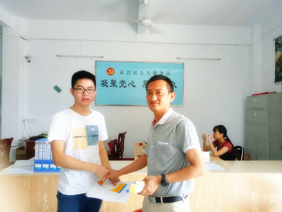 在调研活动上,调研组前往赤岩村委会进行调研。先后采访了赤岩村村委会副书记吴炳凯以及赤岩村财政所长兼社会事务办主任杨剑平,他们都肯定了我们主动宣传国家资助政策的行为,并予以赞扬。