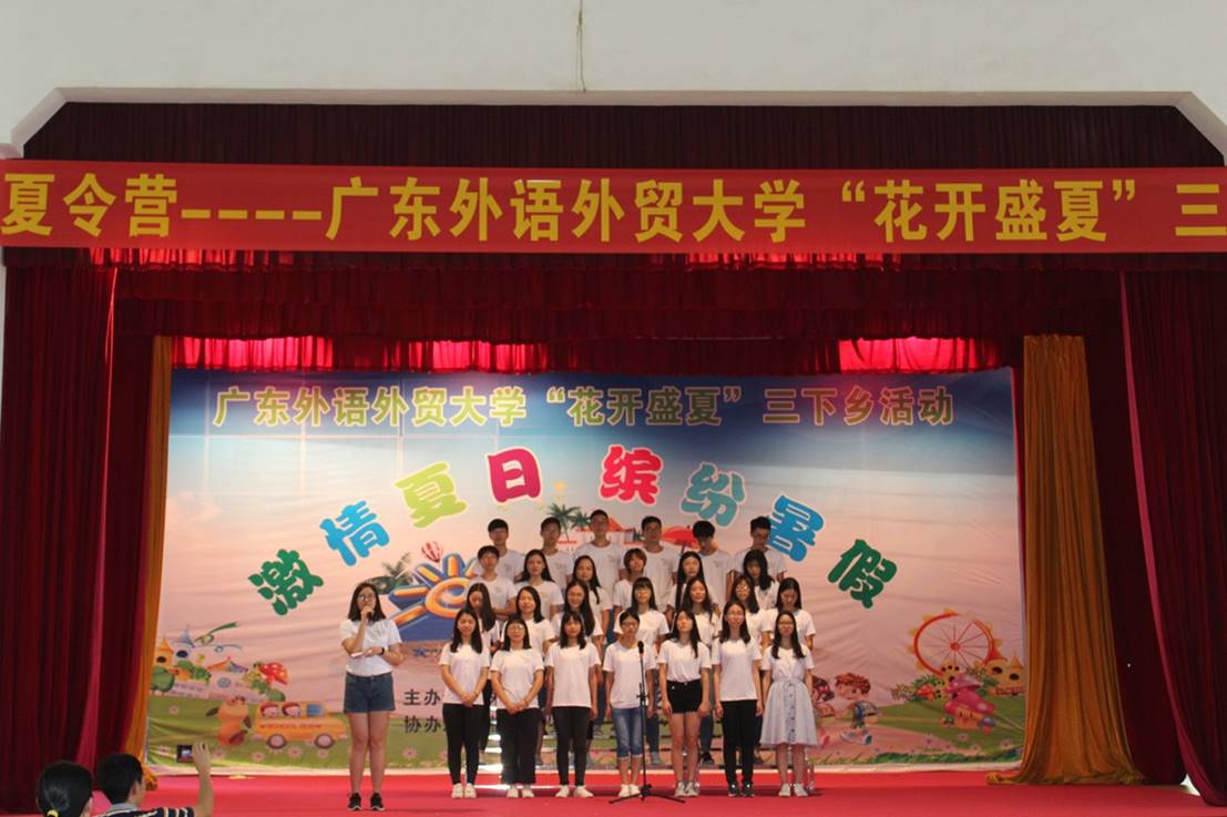 紧接着,参与本次活动的学生们在新任老师的带领下,为大家表演了诗歌朗诵、合唱等精彩的节目,赢得了观众们阵阵热烈的掌声。开幕式最后由“花开盛夏”服务队全体队员为师生们表演了英文歌合唱《lemon tree》,展现了我校的外语特色。