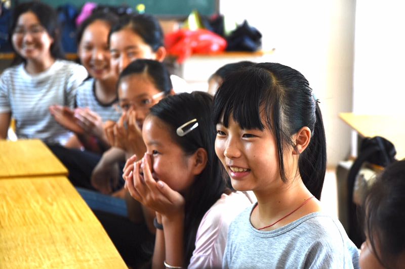 最后一节是体育课,一部分同学跟老师下去打篮球,一部分同学留在教室做游戏。时间不知不觉来到了五点,暖暖的夕阳撒满校园,一天的课程结束,在嬉笑声中,队员们跟所有学生一一告别。新晴之约服务队圆满的结束了今天的义教工作,虽然队员们都很累,但是大家的喜悦溢于言表。期待明天,我们的故事才刚刚开始……