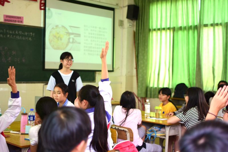 九点,“新晴班”正式开始上课。首先是王颖诗给学生们带来了“医疗与疾病”趣味英语课,同学们积极学习有关人体结构与疾病方面的英语知识。随后纪驰彬给大家带来了趣味数学课,一个个趣味逻辑问题由老师带领着同学们做深入思考。课堂上,老师生动幽默的语言以及与学生频繁的互动使得课堂十分活跃。早上的最后一节课,陈嘉敏向学生介绍了大学的生活,一首不同语言集结起来的广外版《告白气球》令学生们的热情高涨。这节课不仅改变了学生们对大学生活的刻板印象,也让学生对将来的大学生活充满向往。