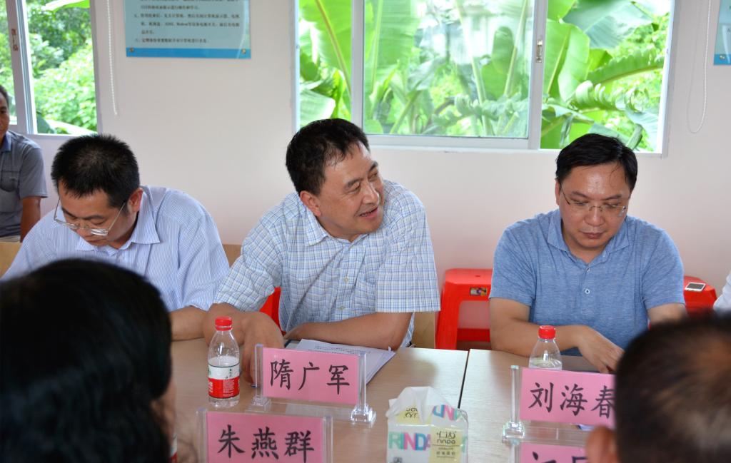 隋广军一行在蒲芦洲村村委会会议室与阳山县委副书记、政法委书记朱燕群,县政协副主席熊雄,岭背镇、蒲芦洲村相关领导以及我校扶贫驻村工作队展开了座谈会。隋广军在座谈会中认真倾听了校团委组织部执行部长兼服务队队长杨丽霖的队伍情况汇报,在讲话中赞扬了三下乡服务队的工作进展,并提到学校会继续支持我校学生项目工作的开展,希望队员能在调研工作中有所收获,能真正帮助到当地扶贫工作的开展;同时,他期望服务队能分享调研成果,在工作过程中克服障碍和瓶颈,学会创新、积极寻找解决方法。
