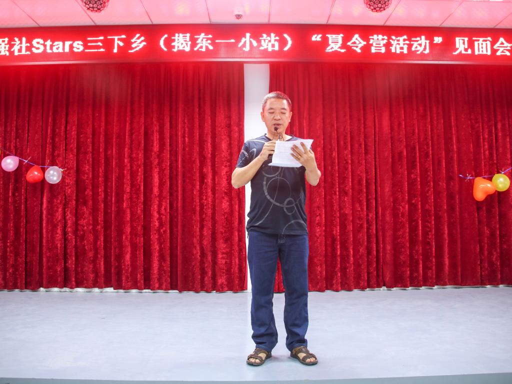 随后,方培勇发表了简单的讲话。方培勇先对揭东区第一小学做了介绍——揭东区第一小学是粤东地区远近闻名的重点学校,近年来培养了无数人才。然后对STARS三下乡服务队的到来表示了热烈的欢迎,并会对我们的工作提供大力支持。最后,校长表达了对这次三下乡的殷切期盼和美好祝愿,他提到广东外语外贸大学的学生为同学们带来智慧和才华,希望同学们好好珍惜这次机会,增长见识,开阔眼界。