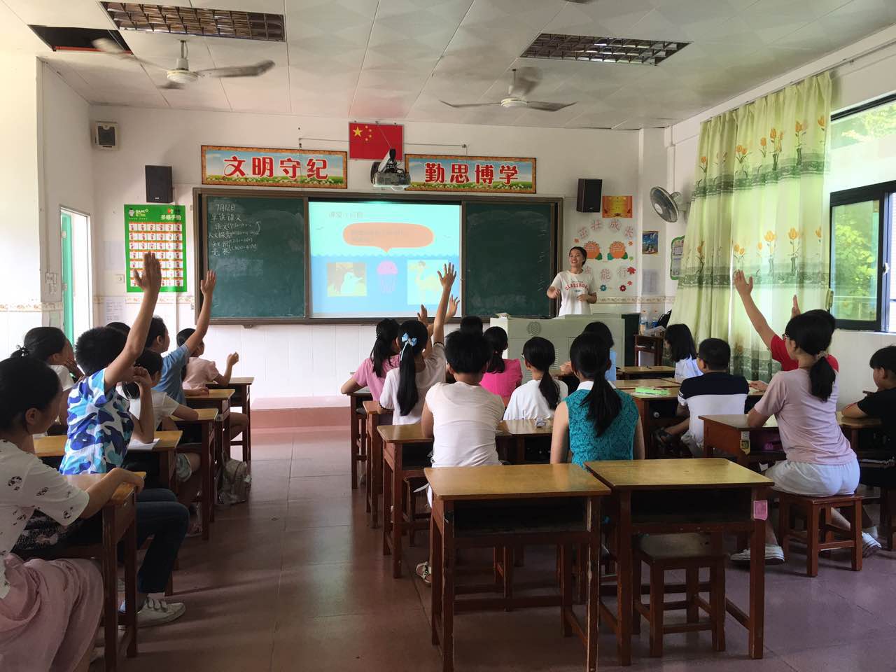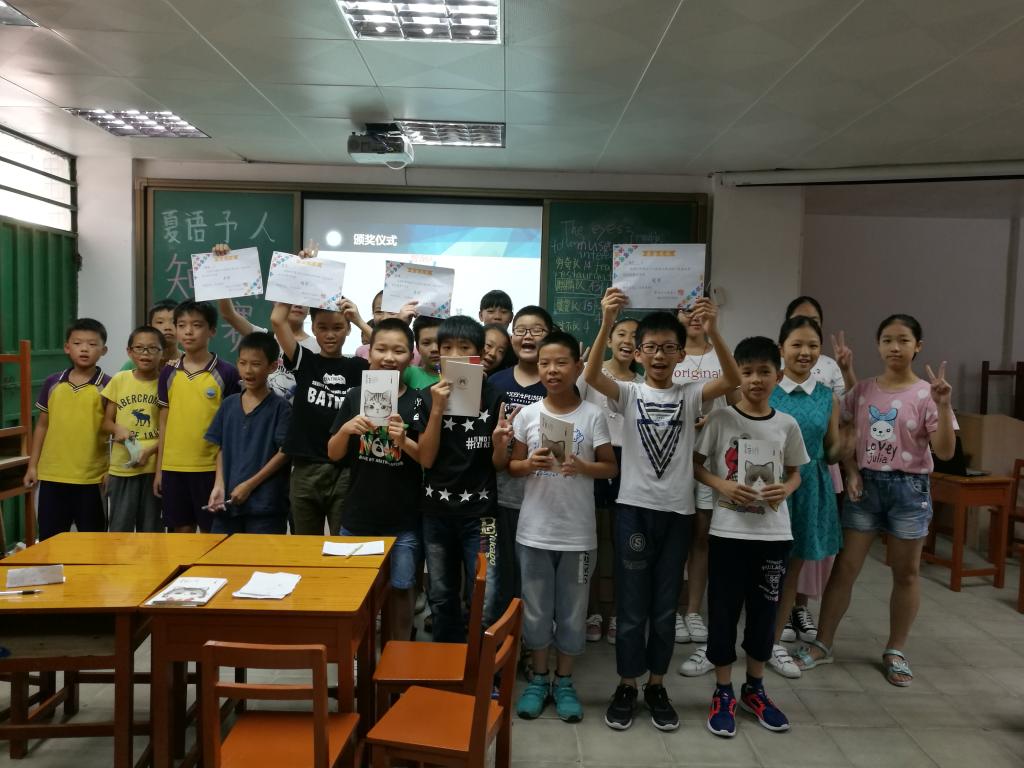 本网讯2017年7月13日,广东外语外贸大学会计学院的夏语予人服务队在珠海市斗门区井岸镇第三小学在上午进行了正常的教学活动后,于下午2:30举行了“我型我秀”知识竞赛,48名学生被分为8支队,最后由“智源队”获得了最后的冠军。