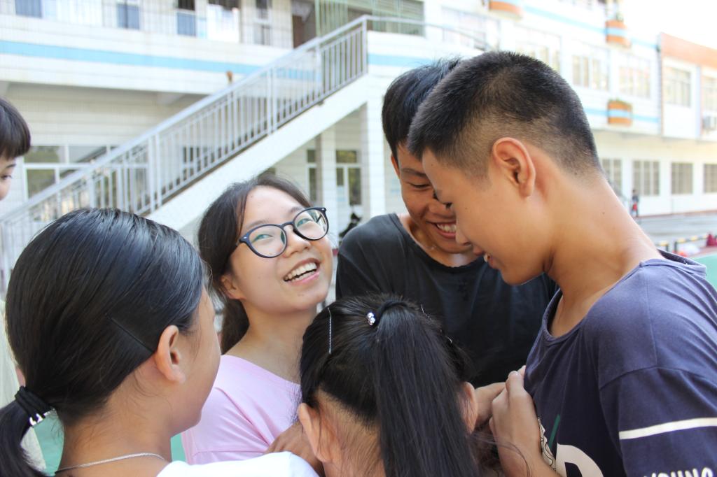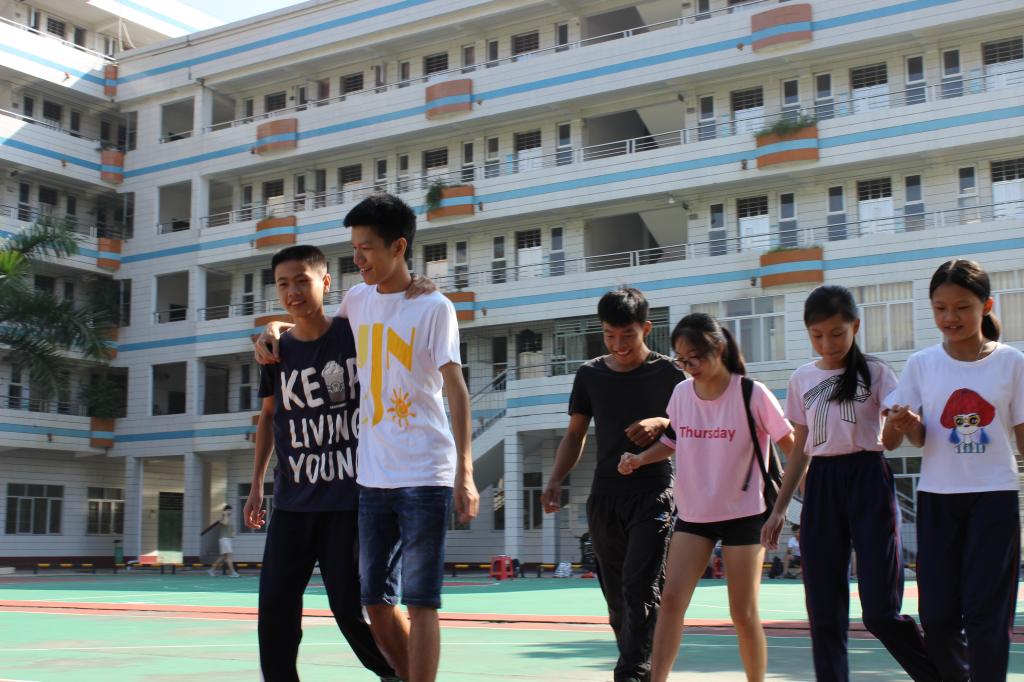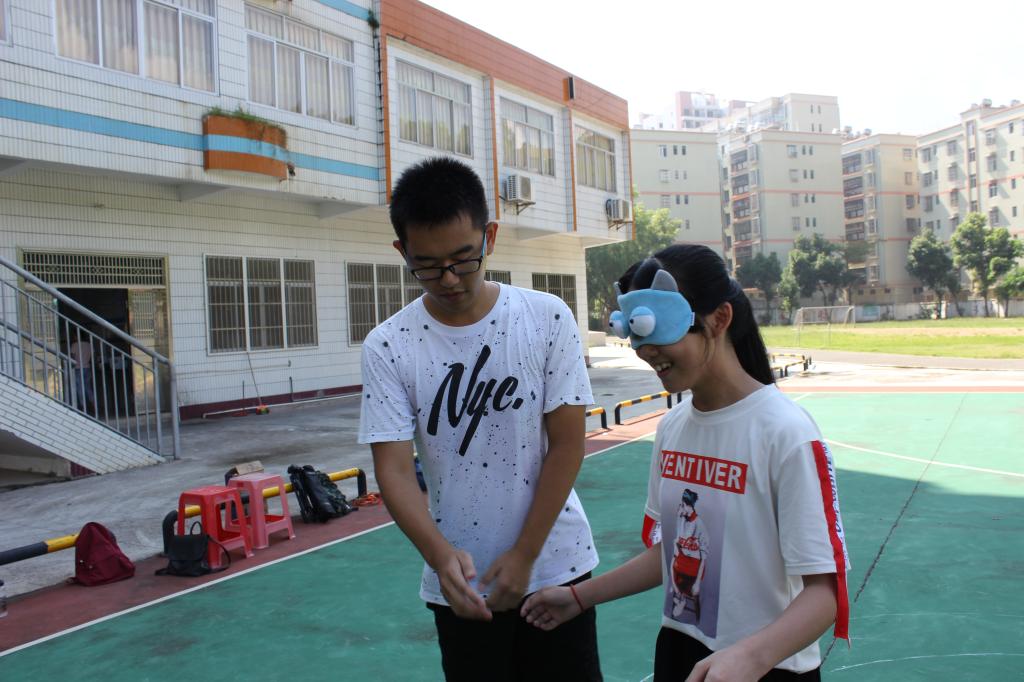 在“跳大绳”、“二人三足”这些项目上,同学们都没有被轻易难倒,虽然在“跳大绳”的项目上,同学们在刚开始时都无法连续跳完十个完成挑战,但经过一次次地调整和重新配合,各个队伍还是很快地通过了这个项目。到了“叠报纸”这个环节,则十分考验团队的合作,他们必须千方百计地站在一张重复对折的报纸上,对折的数量越多就能够胜出。当报纸已经对折两次的时候,不少队伍都陷入了瓶颈,但学生们都主动背起自己的队员,义教组的组员也全不介意其他学生踩在自己的脚上,他们的双手紧紧交叉握在一起,抱成一团,只为了不会掉出去。