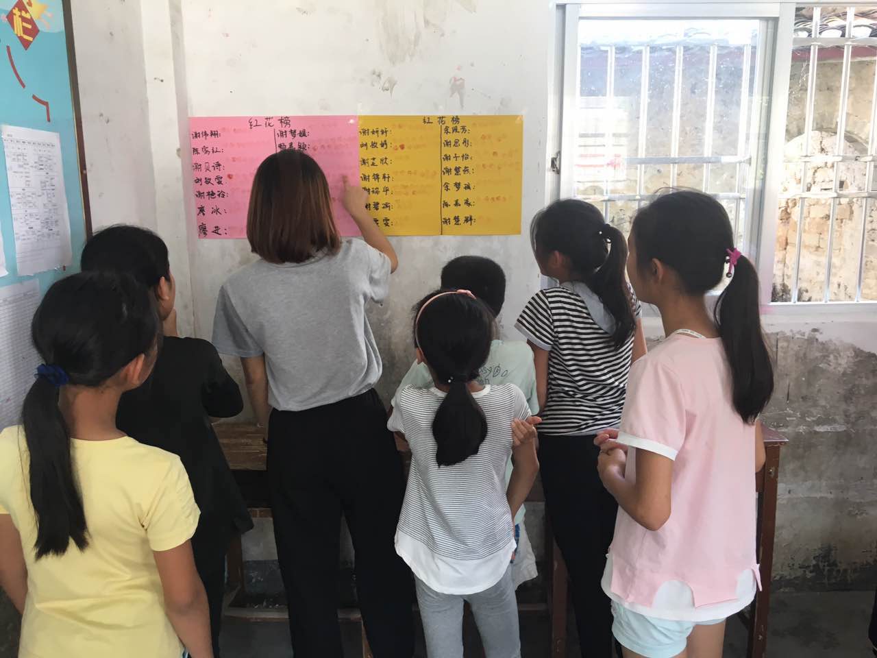 接下来,义教组组长在下课后根据小朋友的课堂表现,进行小红花奖励,每到这一时分,小朋友总是显得很兴奋,会在一旁欢乐地跟老师说他们今天得了几个小红花,脸上洋溢着满足的神情。放学后,小朋友们也会欢快地跟我们说再见,然后成群结队打闹着走出校门。