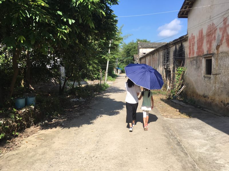 下午,下课时分,在这个小村庄里下起了一场太阳雨,在校园场地晒稻谷的居民们纷纷在收稻谷,小朋友们在跟老师们道完别之后,陆陆续续走出了校门。