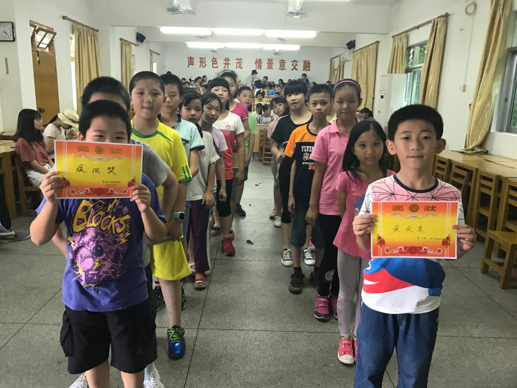 各个地点的比赛都在热火朝天的进行,这个夏天,学生们尽情绽放自己的笑容,到处都是可爱孩子们的欢声笑语。各个比赛中,小组里存在摩擦,却更有团结协作一心向前的合作精神。下午四点整,随着最后一个小组完成所有项目,比赛结束,学生们回到多媒体教室集中,进行最后的颁奖仪式。