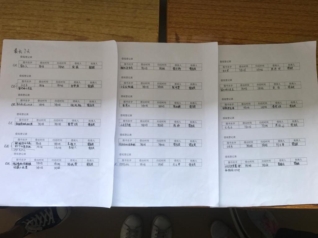 学生踊跃地借阅书籍,图书角设立没多久,图书借阅登记表就已经列得满满的了。