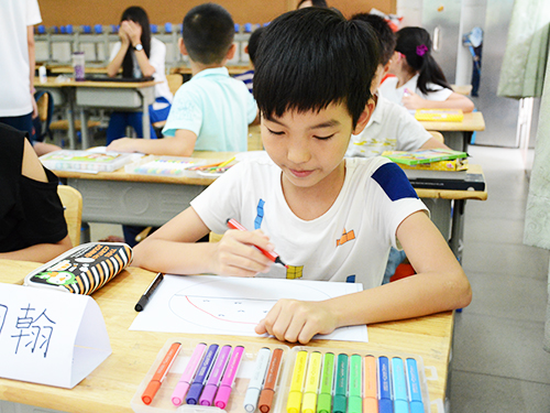 同学们在整个夏令营中,对美术课的兴趣最为浓厚,在今天的“九芒星的彩色钥匙”课程中,三年级的同学们充分发挥想象力,吕倩媛老师和张婕老师相互协助,积极引导学生,学生们听着音乐,手中拿着画笔,画出了属于自己的极具特色的作品。