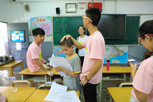 “其实一开始参加三下乡是为了志愿时,而后来投入到这个活动的时候,就渐渐发现这个活动的吸引力——一群拥有共同志向的伙伴和一群活泼可爱的小朋友。踏进博爱小学的那一刻,仿佛自己回到了少年时代,这是一个很新鲜的体验。”这是叶俊锋在这个暑期选择三下乡的原因。