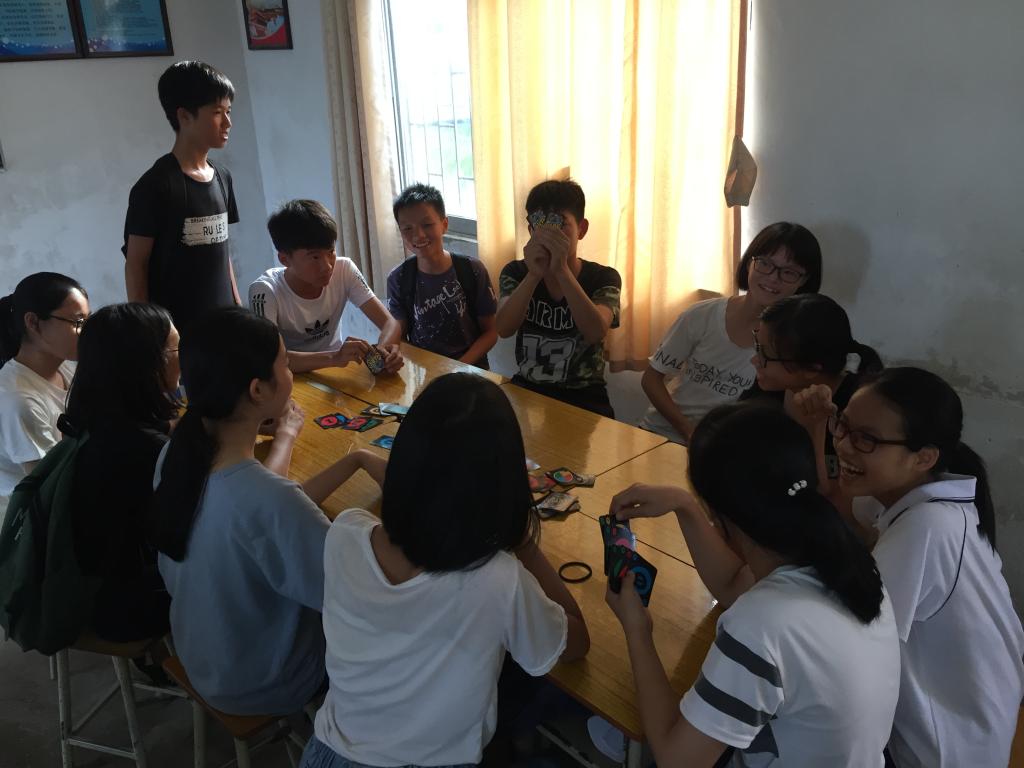 本网讯2017年7月14日下午,我校科幻协会的“欢乐颂”三下乡服务队在月山初级中学大岗校区完成了一天的预定课程之后,同学们与队员们开始了各种各样的课余活动,同学们在收获乐趣的同时,也获益匪浅,真正体现到了三下乡的价值。
