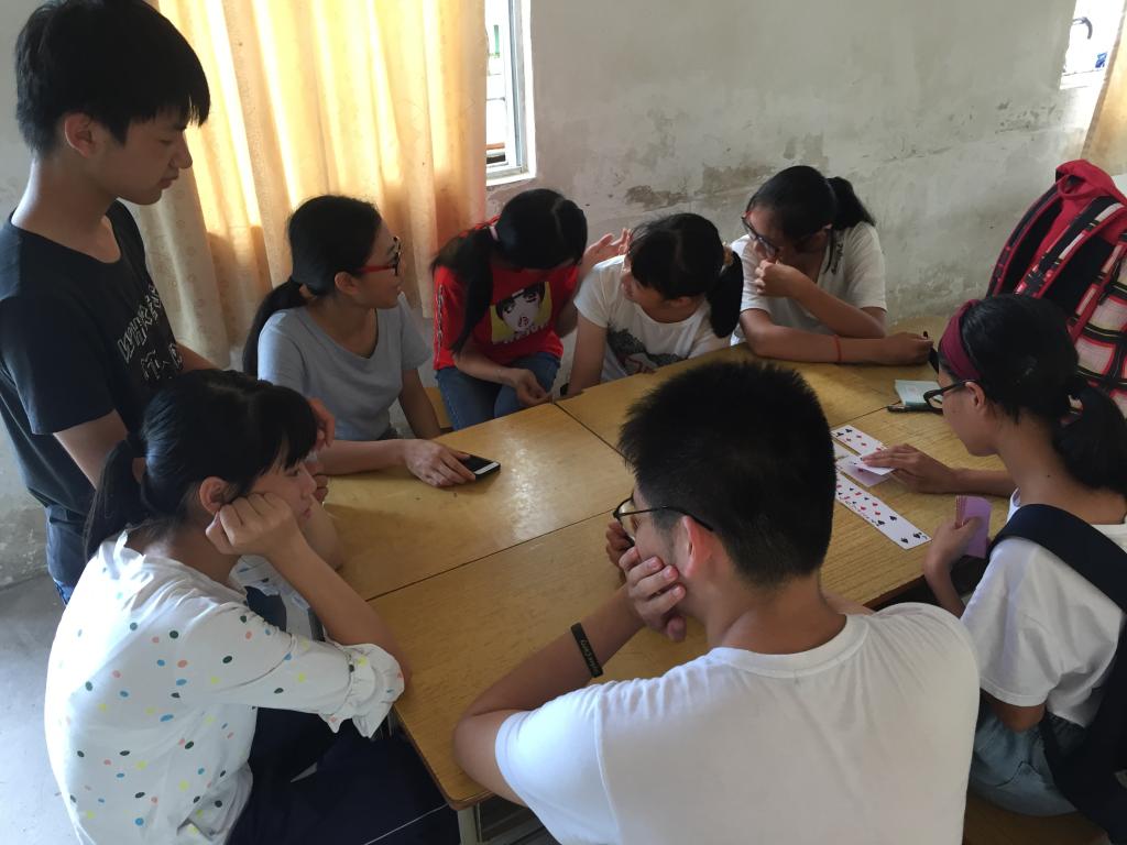 同学们在课室里玩三国杀桌游