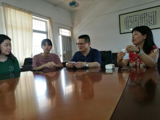本网讯 7月13日(星期四)上午,广东外语外贸大学马克思学院赖洁莲副教授亲自赴中山市南朗镇榄边小学看望广外旅协“希望使者”服务队队员,并积极了解和视察队伍三日来开展的各项工作。7月14号下午,马克思学院郑亚伟院长亦莅临榄边小学亲切慰问队员生活与工作现状,与阮凤香副校长及“希望使者”全体队员在三楼会议室召开了慰问座谈会,在高度肯定校领导与服务队员默契配合的同时,亦就相关工作提出了宝贵的意见及建议。
