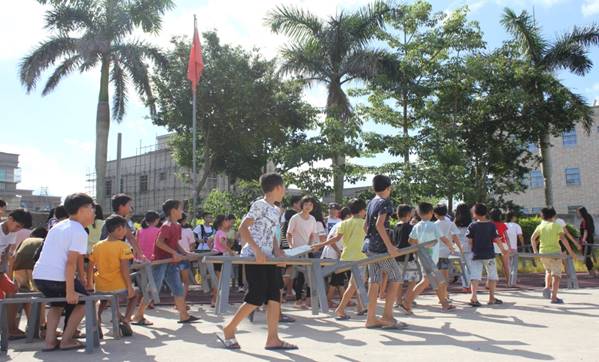 学生们积极摆放桌椅