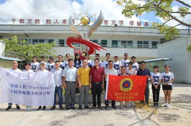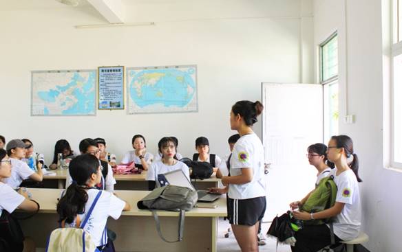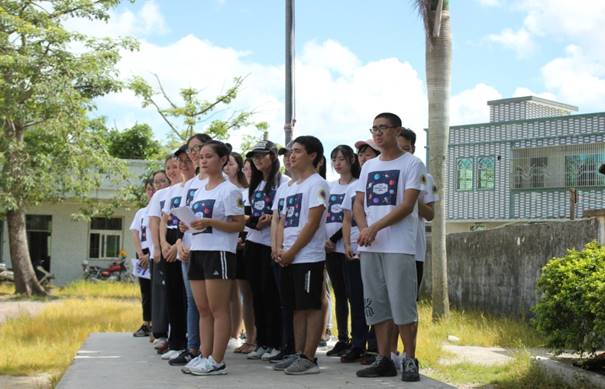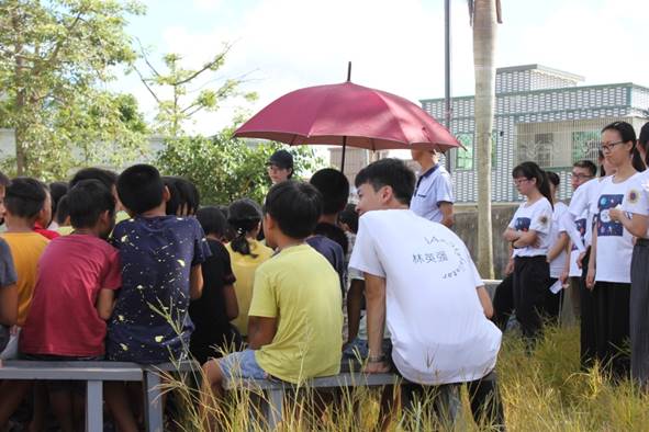 全明星服务队队员依次上台自我介绍自己的组别与工作,并简单说明了几项活动,例如7月20日的“手牵手心理节”活动、7月23日的趣味运动会等等,即使与同学们初次见面但默契却十足,幽默的话语使同学们忍俊不禁,开怀大笑。介绍完毕后,我队为同学们演唱队歌《他夏了夏天》,歌声嘹亮,激情澎湃。活泼的旋律让气氛变得活跃起来,学生们也跟着快乐地吟唱起来。一曲落幕,开幕式圆满结束。学生们将桌子搬回课室,为教学活动做好充分准备。队员们与校领导进行合影留念。