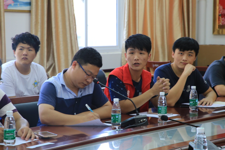 乐昌市常委副市长曾悦、教育局副局长薛陆平、廊田中学邓校长带领广东外语外贸大学商学院党委书记植秀聪、副书记罗海洋、团委书记杨欣老师以及几位老师参观考察了饭堂和宿舍,期间,各领导对队员进行了亲切的慰问和问候。紧接着是由团委书记、指导老师杨欣老师的主持的“三下乡”社会实践调研座谈会。首先,杨欣老师带着同学以热烈的掌声表示对此次参会嘉宾的热烈欢迎,并邀请乐昌市副市长曾悦先生发言,副市长表示再看见年轻的脸庞,艳丽的衣服,仿佛听到了青春的音符,此刻的他认为不应该以乐昌常委副书记身份发言,更应该以广外人的身份与我们交流和分享。他回忆起前三月在广外北校居住的经历,并感慨“白云三下薰文人,三月书香绕广外”,并送予我们“盛夏七月,有一群人只有我们知道。”此美言,”最后感谢了受教下乡的队员们,并对我们的未来表示期许。党委副市长曾悦先生提到“在以后的工作中,能给人生的舞台留下和衣服颜色一样艳丽的色彩”。